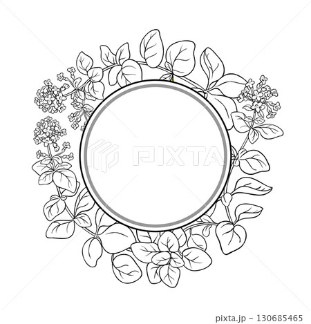 Christmas wreath of fir branches illustration. Round frame of coniferous branches. Monochrome outline vector drawing in green color. Graphic illustration for New Year design, weddings, labels, cards