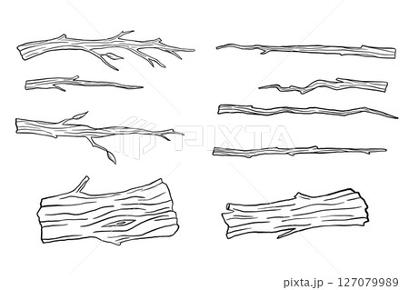 Dry tree and branch sketch isolated on white background. Hand drawn illustrations set, wood trunk