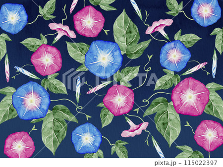 朝顔 夏 花 背景 模様 パターン 水彩 イラスト