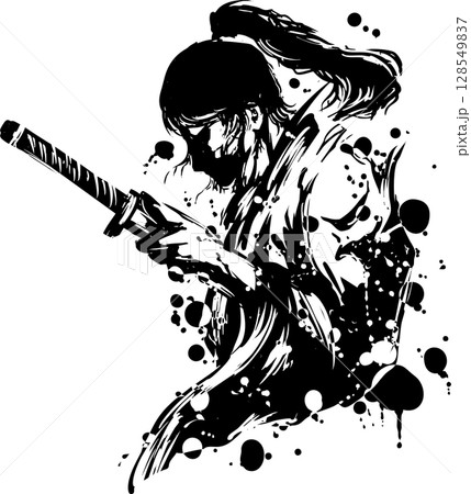 女性の侍の墨絵イラスト