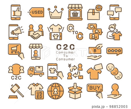 C2C(Consumer to Consumer)カラフルなラインアイコンセット