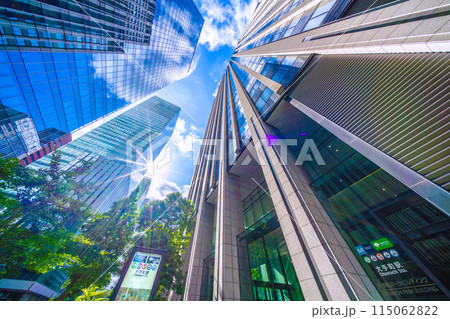 日本の東京都市景観 夏のような日差しが乱反射し色鮮やかな摩天楼を生み出す…=30日、大手町