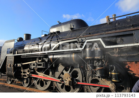 蒸気機関車・C61形2号機・車両番号C612の転車台と青空