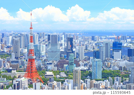 東京都港区、東京タワーと東京の街並みの風景