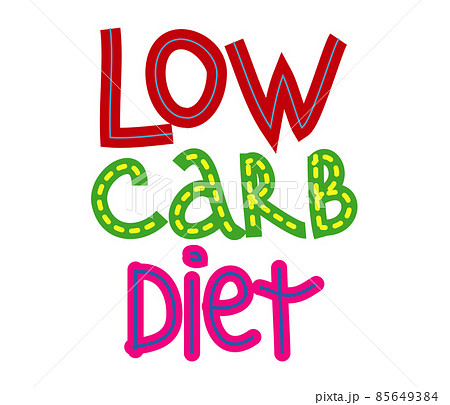Low carb diet color lettering isolated. Hand drawn in cute cartoon style