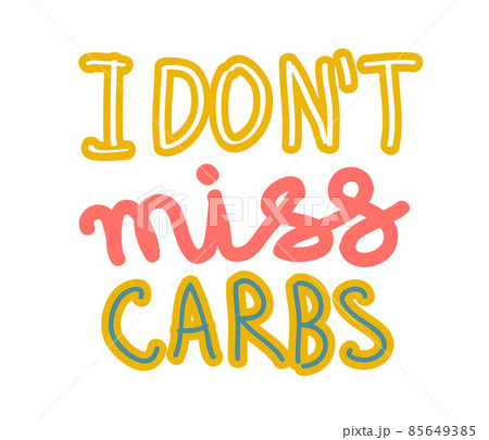 I don t miss carbs hand drawn lettering. Keto diet flat collage illustration. Ketogenic eating slogan. Healthy low carb nutrition. poster, banner, t-shirt design
