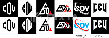 CDV letter logo design in six style. CDV polygon, circle, triangle, hexagon, flat and simple style with black and white color variation letter logo set in one artboard. CDV minimalist and classic logo