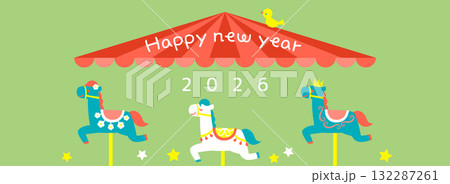 2026年 午年用メリーゴーランドの横長バナーイラスト