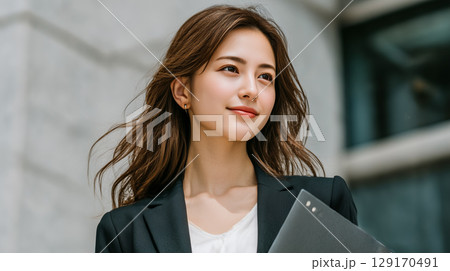 屋外を歩くビジネスウーマン