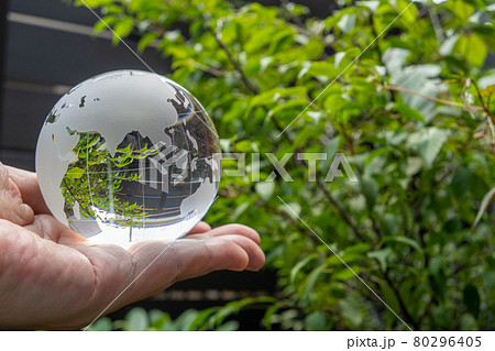 ガラスの地球儀と緑 SDGs 環境保護 イメージ