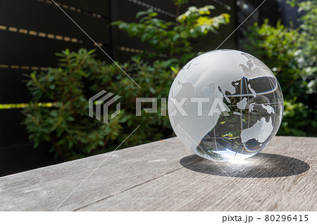 ガラスの地球儀と木片の地面 SDGs 環境保護などのイメージ