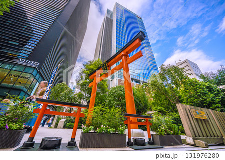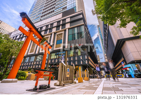 日本の東京都市景観 日本橋室町。奥に、ビルの谷間の福徳神社。本日9月24日は、一粒万倍日