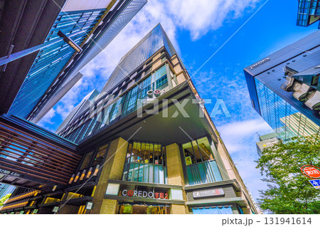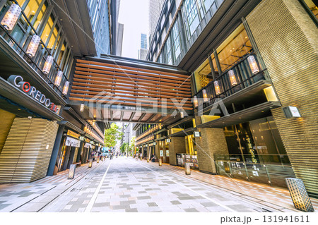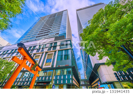 日本の東京都市景観 日本橋室町・CORED室町2などを望む。(奥にはビルの谷間の福徳神社)