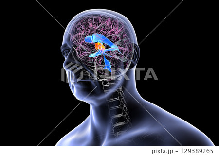 Cerebrospinal fluid. Cross section of a human brain with Ventricular system