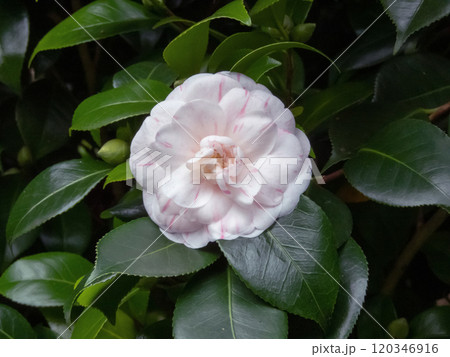 Camellia japonica,common camellia or Japanese camellia white flower with pale pink stripes