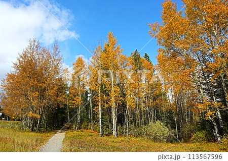 カナダ・キャンモア、黄葉した公園