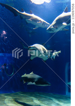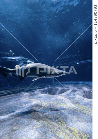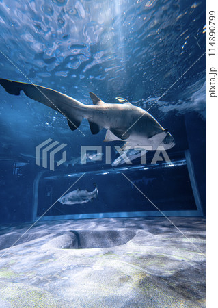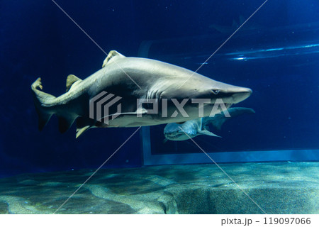 Sand Tiger Shark swimming in the aquarium tank.