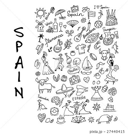 Dark Set of Symbols of Spain in Hand-Drawn Style