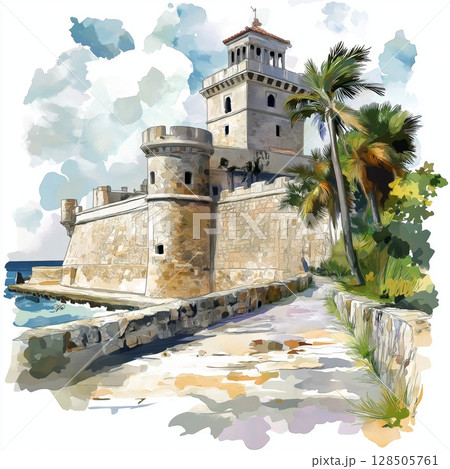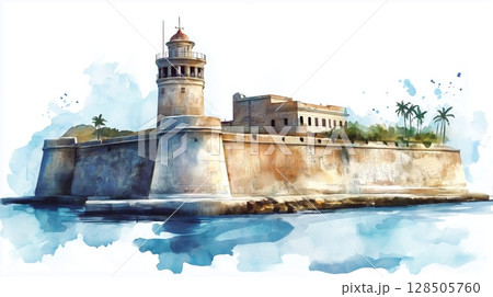 Castillo de los Tres Reyes Magos del Morro. Castillo de los Tres Reyes Magos del Morro hand drawn watercolor illustration