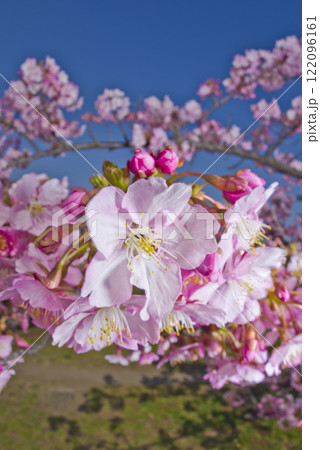 満開のカワヅザクラ(河津桜)の花が咲いています。