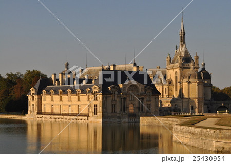 Great beautiful castles and heritage of France- Chateau de Chantilly over sunset
