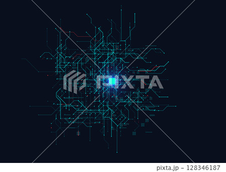 Motherboard technology circuit board background texture design. Creative idea AI banner concept for internet technology. Digital motherboard concept for poster, cover, banner, header, web template