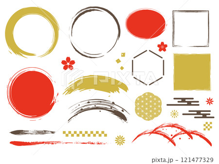 和風 フレーム ライン あしらい 素材 金色 赤 茶色 ベクター セット