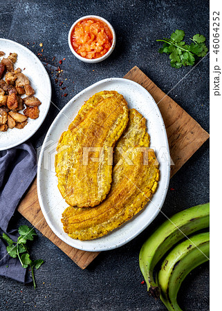 COLOMBIAN CARIBBEAN CENTRAL AMERICAN FOOD. Patacon or toston, fried and flattened whole green