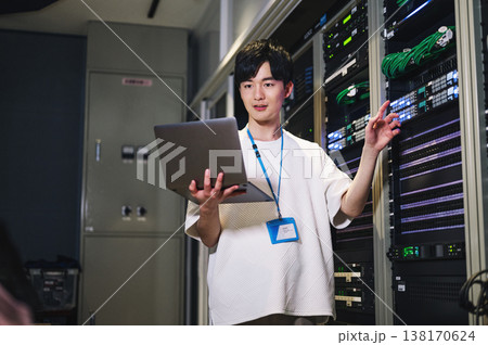 パソコンに打ち込むサーバーエンジニアの若い男性