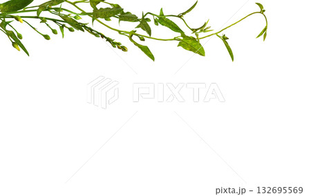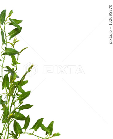 Twigs of fresh bindweed with green leaves in a corner background isolated on white