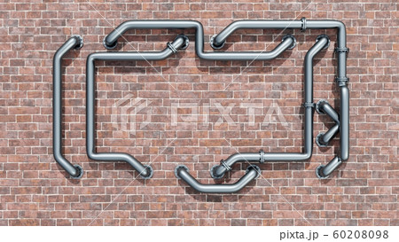 Empty space on a red brick wall is entangled in metal pipes
