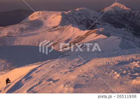 十勝岳から富良野岳に続く稜線。10月。朝