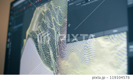 Digital scan or 3D visualization of mountains on the computer screen