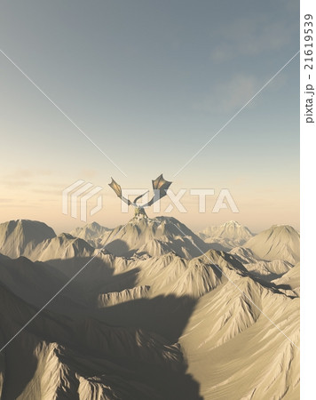 Grey Dragon Flight Over Snowy Mountains