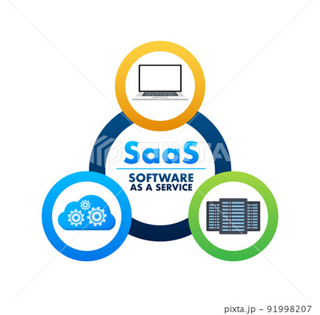 SaaS - Software as a service. Cloud sevice, synchronize. Vector illustration.
