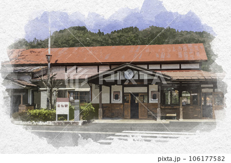 水彩画風 若桜駅 駅舎 鳥取県八頭郡若桜町