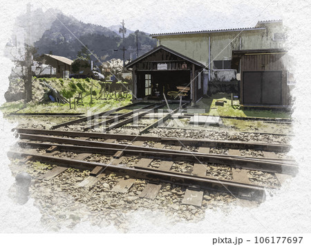 水彩画風 若桜駅 若桜鉄道若桜駅諸車庫 鳥取県八頭郡若桜町
