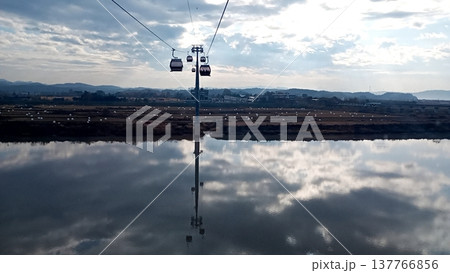 韓国DMZ非武装地帯のロープウェイと川の風景