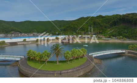 ドローン|和倉温泉と能登島を結ぶ、七尾湾に架かる能登島大橋の空撮|令和6年能登半島地震後