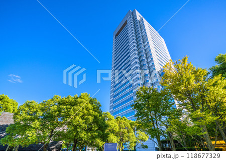 日本の東京都市景観 9月。世田谷ビジネススクエアタワー棟(GMOインターネットTOWER)などを望む