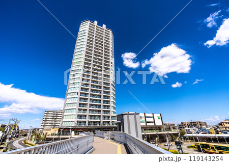 日本の横浜都市景観 長津田駅前のタワーマンションなどを望む