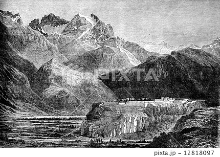 Pelvoux and Ailefroide seen from Mont-Dauphin, vintage engraving