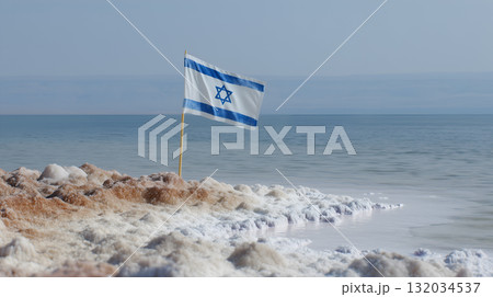 Israeli Flag Planted in Salt Formations Along Dead Sea Shoreline