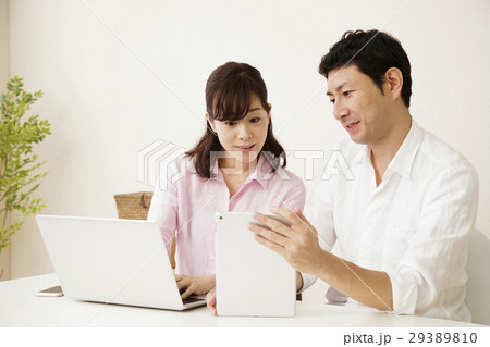 夫婦 パソコン タブレット カップル 女性 家族 男性 主婦