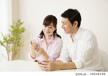 夫婦 カップル 女性 スマホ 家族 男性 主婦 笑顔 人物 ミドル 中年 ライフスタイル