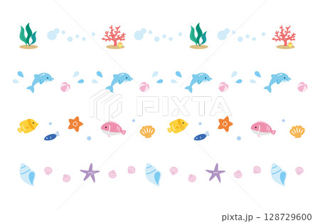 かわいい海の生き物たちのイラスト素材セット
