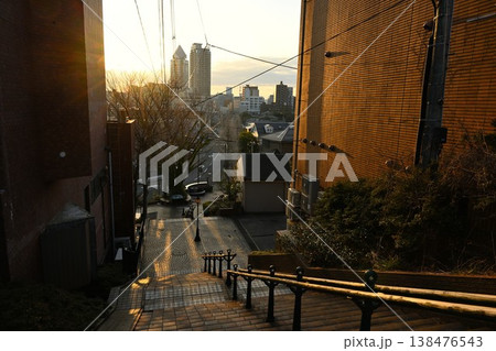 古町方面を望むどっぺり坂の朝景(新潟県新潟市中央区)