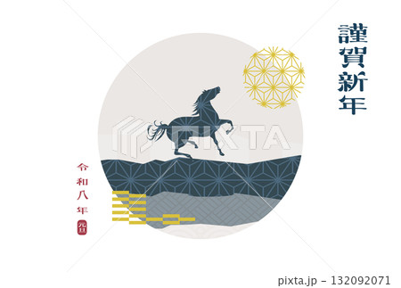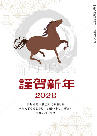 幸運の蹄鉄をモチーフにした馬の年賀状デザイン|2026年令和8年 新年・午年・馬年向け