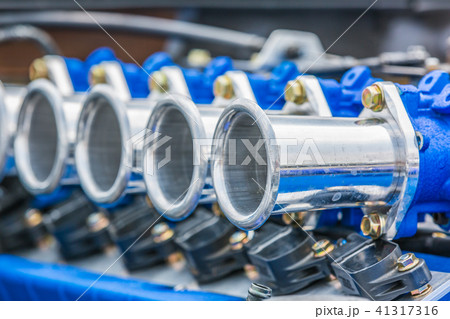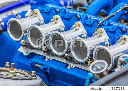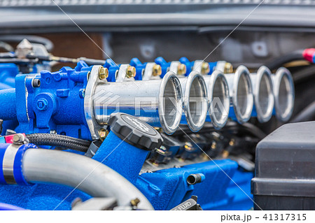 Super muscle car engine, Blue super car engine.