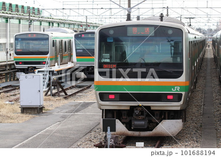 大宮駅に停車中の湘南新宿ラインE231系電車